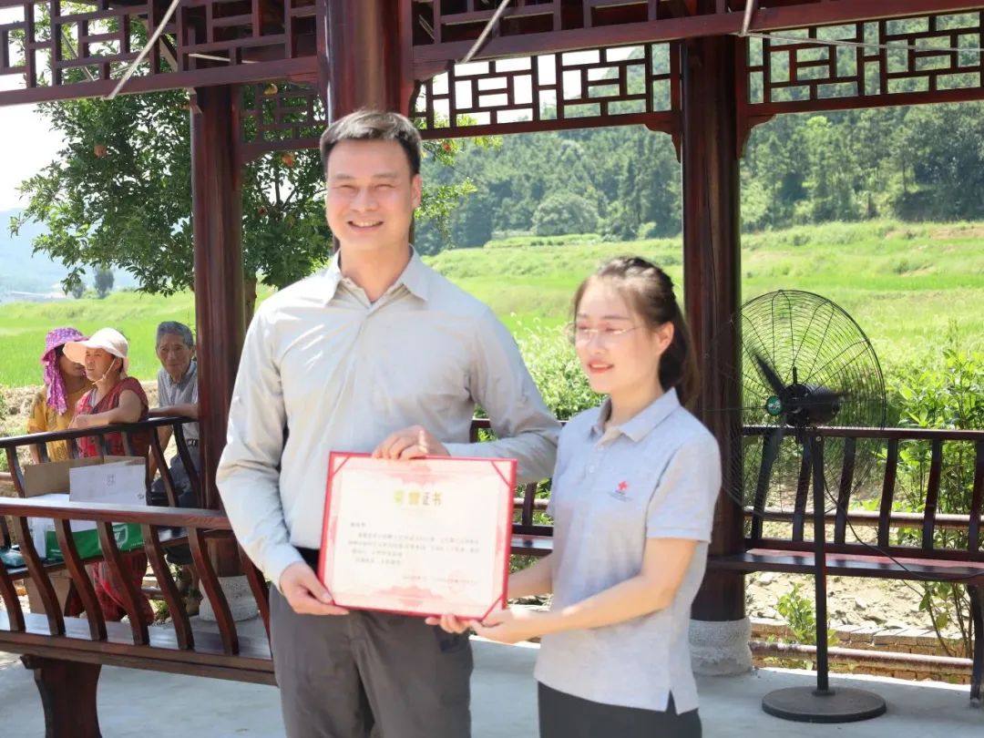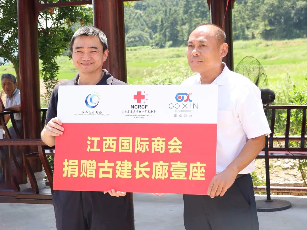 At the ceremony, Zhao Xiangyang, a member of the Party Group and Vice President of the Jiangxi Council for the Promotion of International Trade, and Vice President of the Jiangxi International Chamber of Commerce, donated a cultural corridor on behalf of the Jiangxi International Chamber of Commerce to Yangfeng Village for the construction of the Yangfeng Village Cultural Square; At the same time, the Red Cross Foundation of Nanchang City, Jiangxi Province, expressed gratitude to Yang Weihua, Vice President of Jiangxi International Chamber of Commerce and Chairman of Jiangxi Qianhai Guoxin Electronic Technology Co., Ltd., for presenting an honorary certificate.
