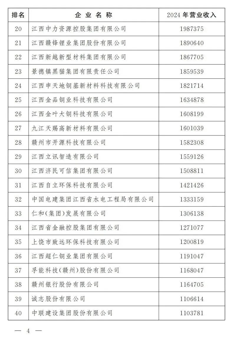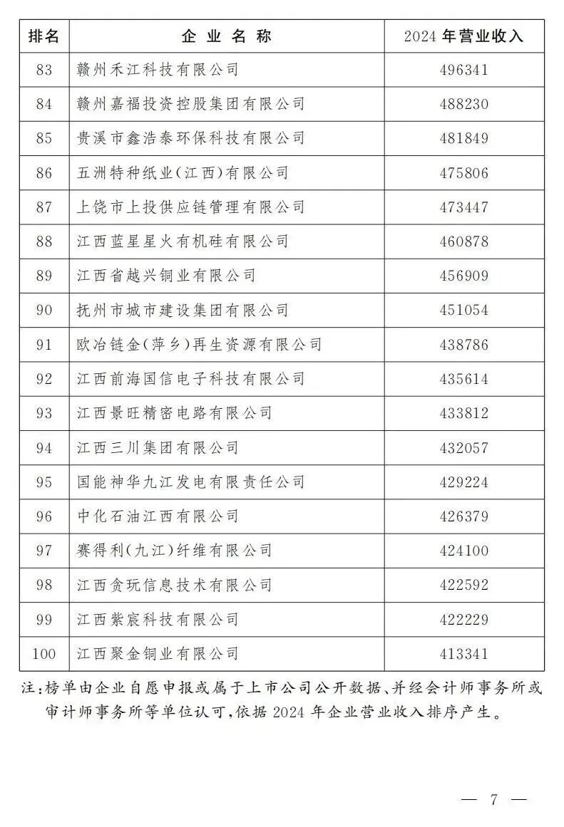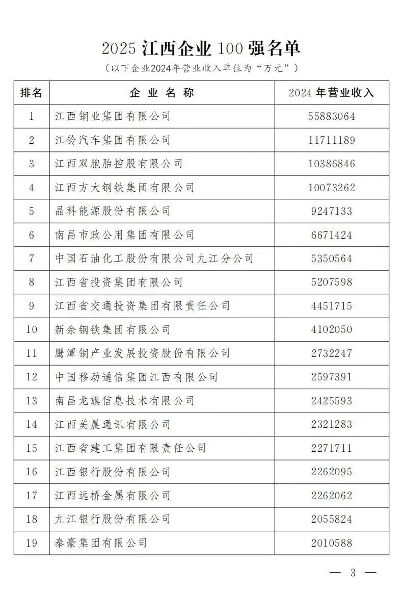 “2025江西企业100强”榜单